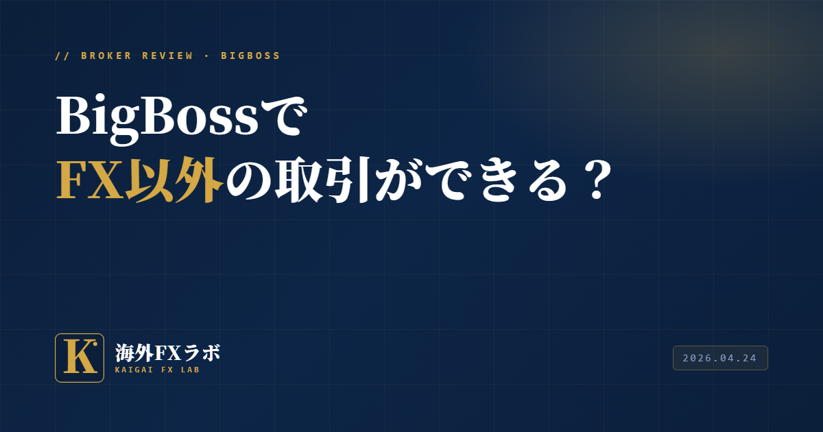 BigBossは「FXに特化した業者」として、通貨ペアの充実度と高レバレッジが強みです。暗号資産にも対応しており、FXと暗号資産を組み合わせた取引には適しています。