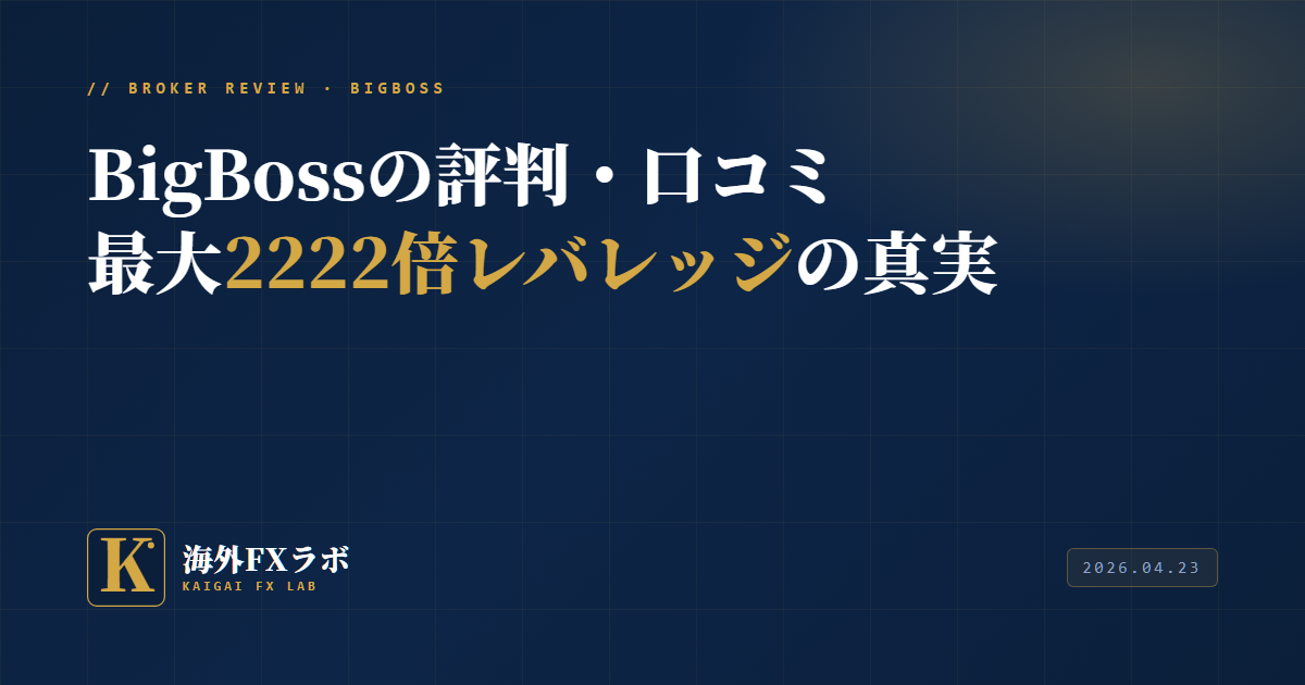 BigBossは2009年に設立された海外FX業者で、キプロスに本拠地を置いています。最大2222倍というレバレッジが特徴で、資金効率を重視するトレーダーから一定の支持を得ています。私が複数の海外FX業者を使った経験から言うと、BigBossは「いかにも海外FX業者らしい」サービス内容です。ただし、信頼性という点では注意が必要です。