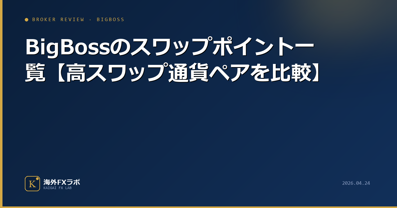 海外FXでトレードをしていると、長期保有による「スワップポイント」の利益機会があることに気づきます。ポジションを翌日に持ち越すと、その通貨ペアの金利差によって利益または損失が発生するのです。BigBossはこのスワップポイントで他社と比べて競争力のある条件を提供しており、スイングトレーダーやポジショントレーダーにとって魅力的な選択肢になっています。