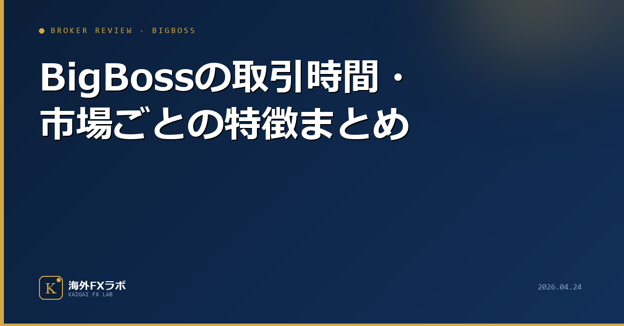 海外FXで取引を始めたいけど、取引できる時間帯がよくわからない…そんなお悩みはありませんか?特にBigBossは複数の市場を扱っているため、どの時間に何が取引できるのか把握するのが難しいですよね。