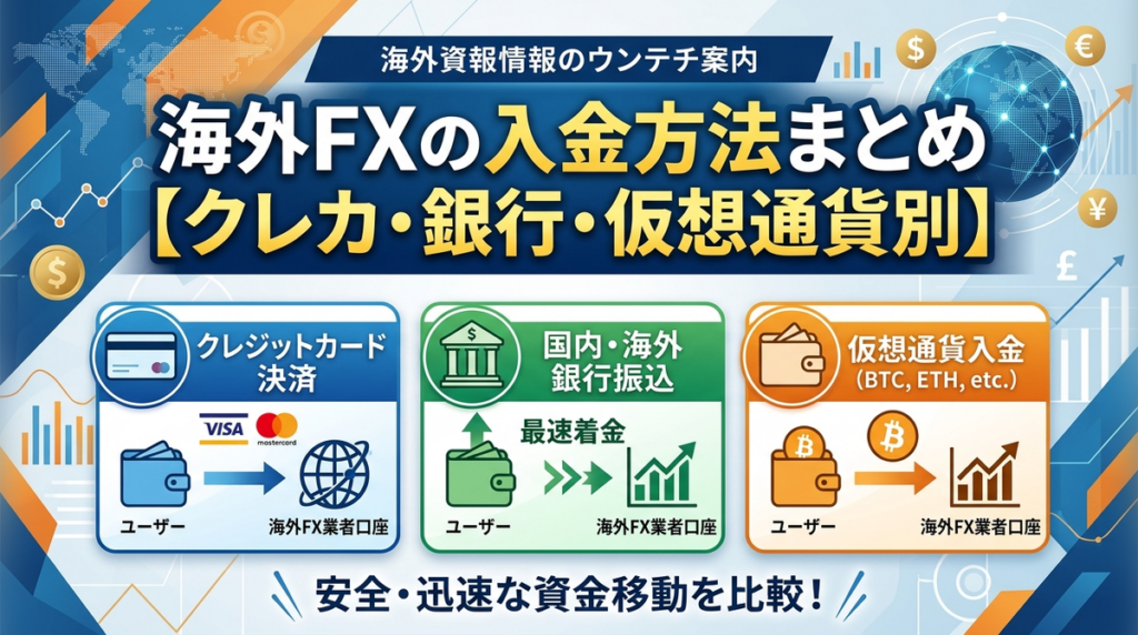 海外FXの入金方法まとめ【クレカ・銀行・仮想通貨別】