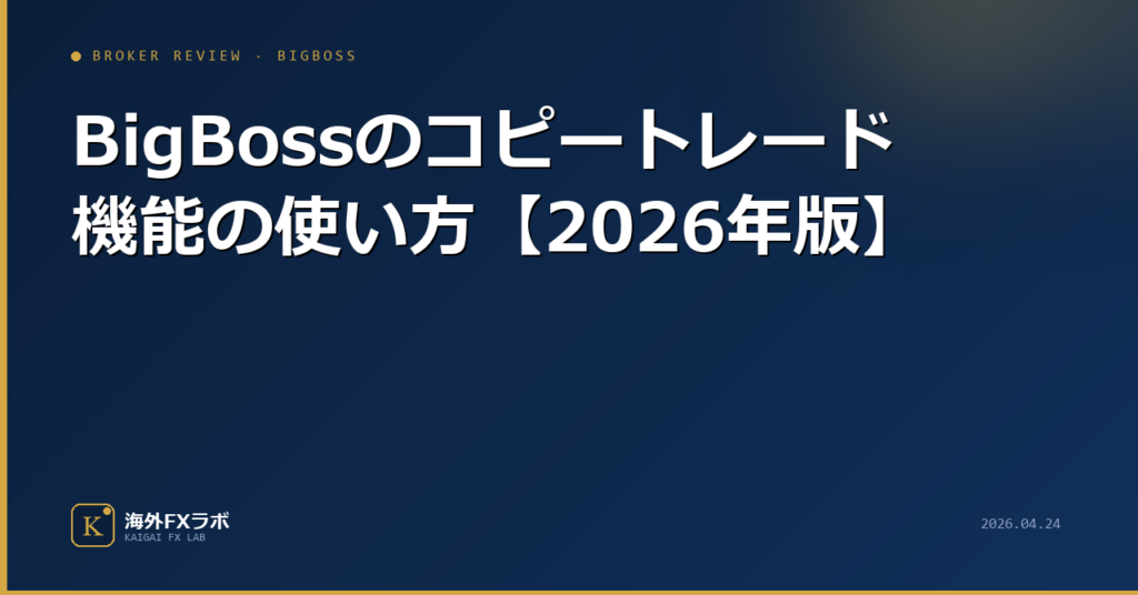 BigBoss コピートレードに関する2026年04月最新情報。 -