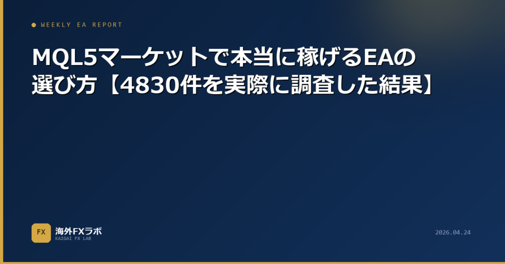 MQL5の4830件のEAを実際にスキャンして分かった、本当に稼げる自動売買EAの選び方を公開。評価基準・失敗しない選び方・MT5の始め方まで解説。 -
