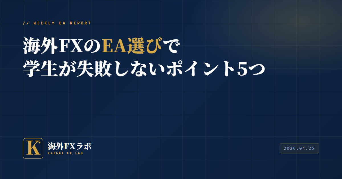海外FXを始めた学生や大学生の中には、EAを導入して自動売買で利益を狙う人が増えています。ただ、スペック表や販売ページの成績だけを見て選ぶと、ほぼ確実に失敗します。私が10年以上海外FXを運用し、10社以上の業者で実際にEAを動かしてきた経験から、失敗しないためのポイントを5つ解説します。