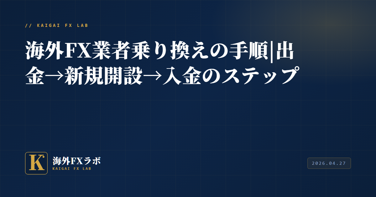 この記事では、出金→新規開設→入金という3つのステップに分けて、海外FX業者の乗り換え手順を解説します。業者の内部構造を理解している視点から、「なぜこの順序が重要なのか」「どんな落とし穴があるのか」も含めてお伝えします。