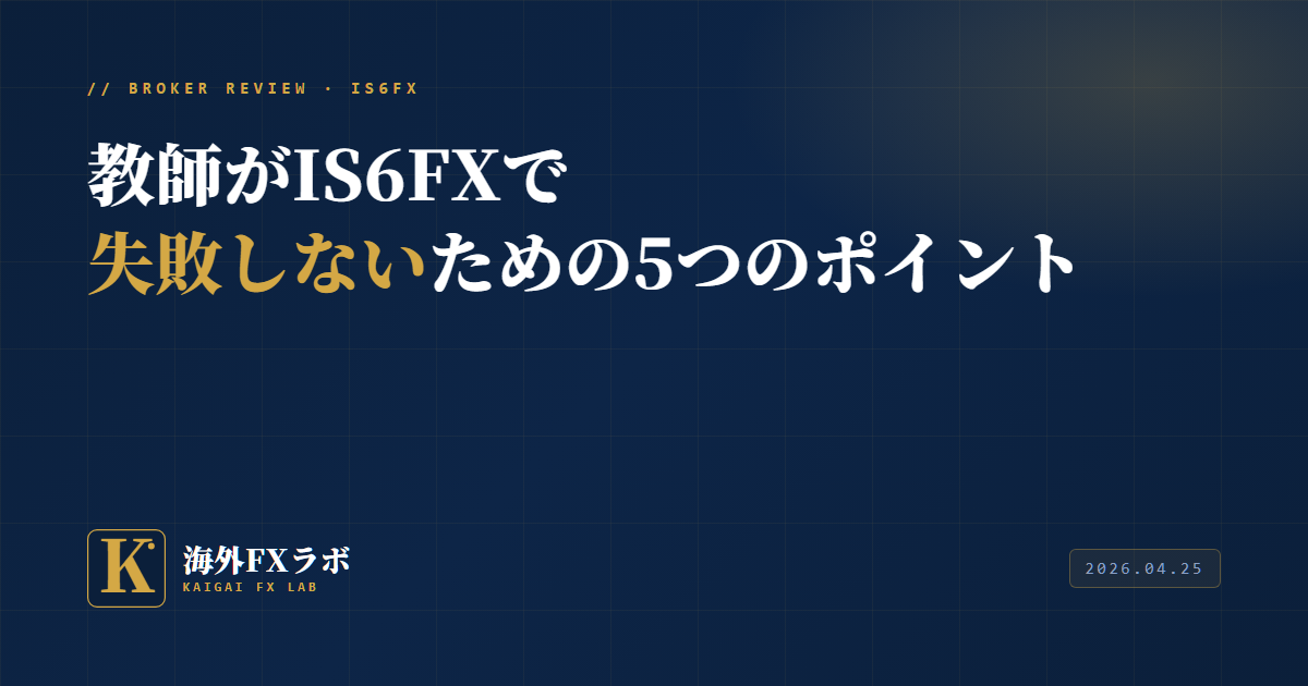 教師という職業の時間的制約と給与特性を踏まえると、FXは「本業の傍ら、長期的に学ぶもの」に位置づけるべきです。その前提で初めて、IS6FXの機能が活きてきます。