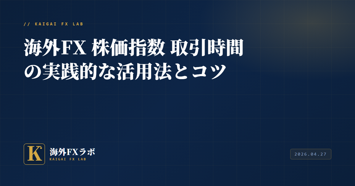 💡 時間帯チェックのコツ: 取引する前に必ず「この指数は今、現物市場が開いているのか」を確認しましょう。現物市場が閉じている時間帯でも海外FXでは取引できますが、流動性が低下し、スプレッドが広がるリスクがあります。