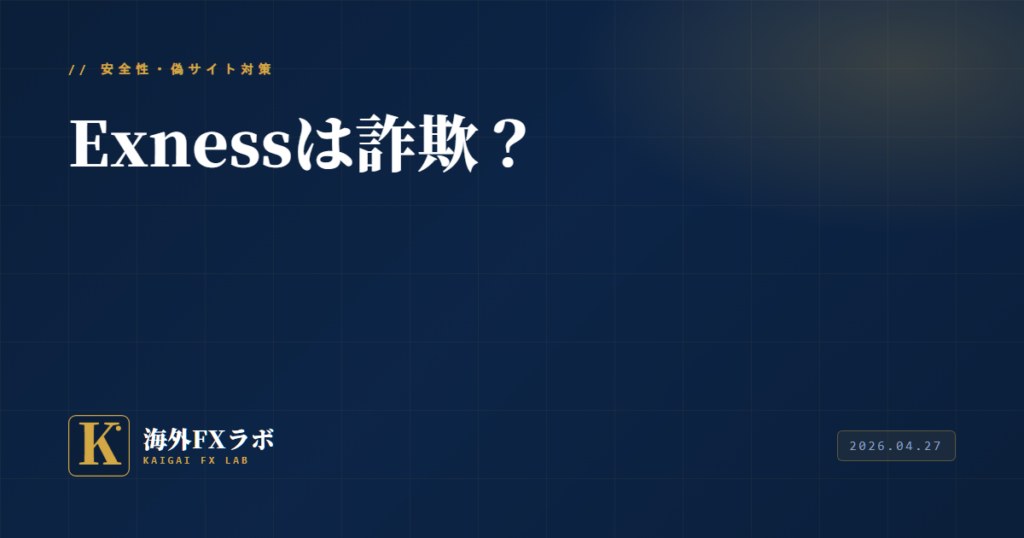 📅 2026年04月27日 更新偽サイト・詐欺グループの最新手口と対処法を追記しました。 📌 この記事でわかること Exness本体が詐欺業者ではない根拠(ライセンス・監査・実績) 「Exnessを騙る」偽サイト・詐欺グループの4つの手口 本物のExnessを100%見分け...