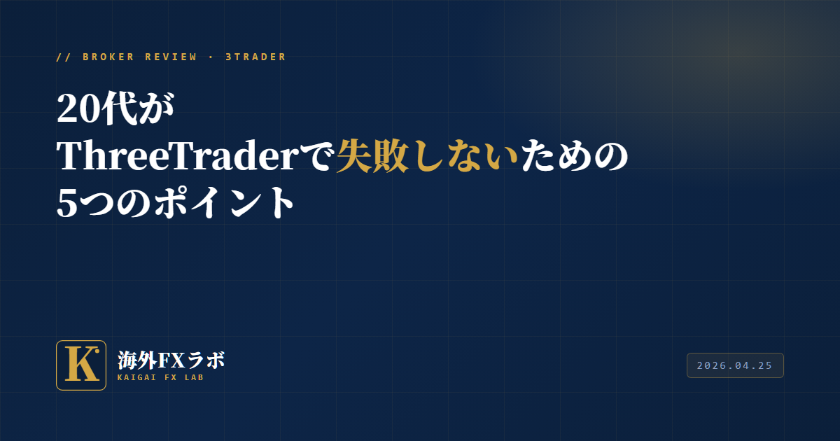 ThreeTraderは確かに優れた海外FX業者です。しかし、優れているからこそ、若い年代が陥りやすい落とし穴があります。今回は、20代がThreeTraderで失敗しないための5つのポイントを、実際の口座運用経験とシステム側の知識から解説します。