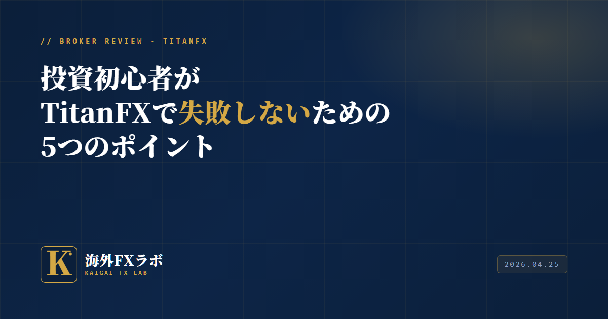 海外FX業者の中でも特に初心者から支持されているTitanFX。低スプレッド、充実した約定力、シンプルなプラットフォーム——これらは確かに魅力的ですが、それだけで成功するわけではありません。私が10年以上の海外FX運用経験を通じて見てきた失敗パターンと、その対策をお伝えします。