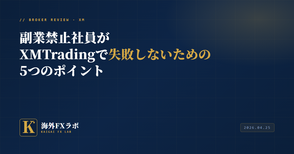 副業禁止の会社に勤めていながら、投資による収入を検討している方は少なくありません。特にXMTradingは海外FX業者の中でも知名度が高く、手軽に始められるため、魅力を感じるのは自然なことです。しかし、副業禁止環境での取引には固有のリスクと対策が存在します。私が10年以上の海外FX経験と、かつて国内FX業者の内部システムに関わった立場から、実務的なアドバイスをお伝えします。